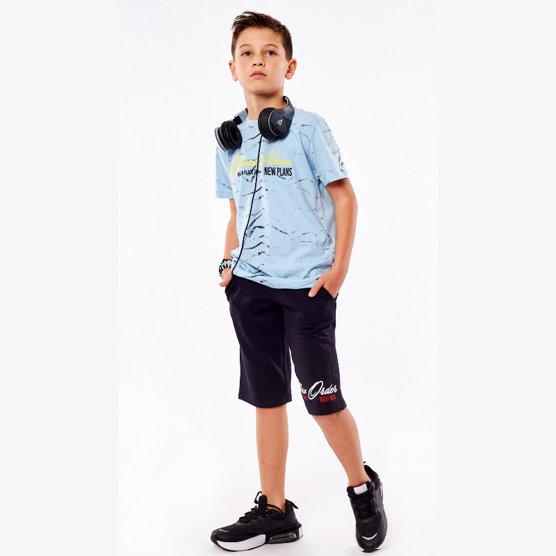 Σετ με μακό βερμούδα μαύρη και γαλάζια μπλούζα. Σύνθεση: 100% Βαμβάκι.